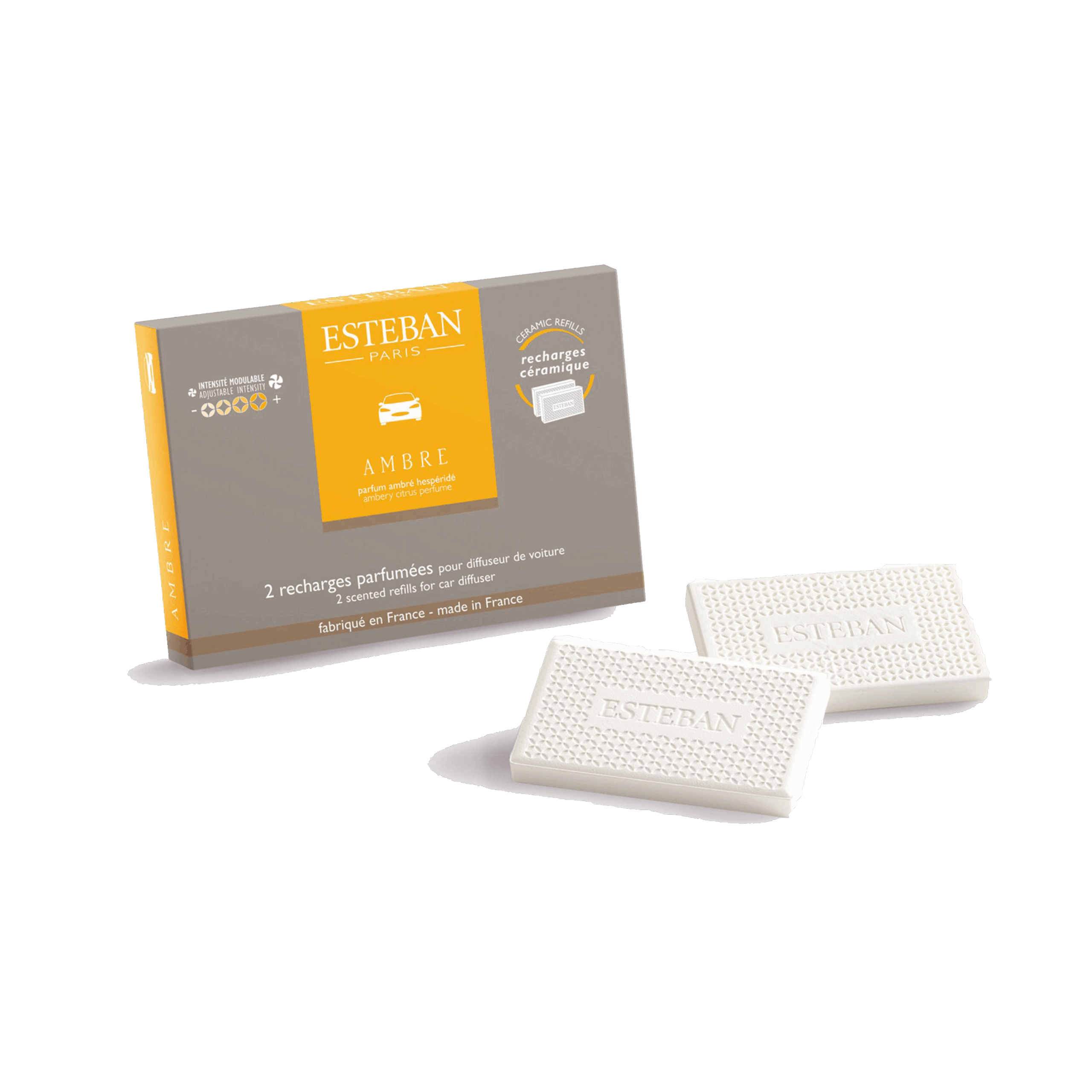 Coffret de 2 Recharges en céramique au parfum Ambre pour votre diffuseur de voiture Esteban.